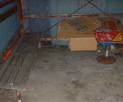 店が閉まるとねぐら探しです。ひょっとして暴走族がよるようなところだと面倒なので外からはあまり見えない場所を確保。スリーピングマットが役にたち、すごく暖かい。
