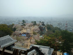 次に松山城。桜が満開の春爛漫。そこでは大野球拳大会が催されていた。桜のした大音量のスピーカーから「やーきゅーうーすーるならーこーゆーぐあいに」とがなり立てていた。テレビ局から松山市長まで来ていた。なぜ日本人の花見というとこうなるの?静かに桜を楽しむことはできないの?最低のイベントに松山城をあとにする。