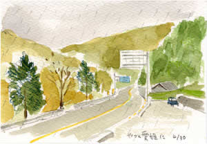 朝、目を覚ますと雨は小降りになっていた。この分では今日も歩けそうだ。夜8時には寝てしまうから遅くとも朝4時には目が覚める。携帯で今日の天気予報を調べる、雨のち晴れ、大丈夫そうだ。それにしても明るくなるまでやることが無い。5時30分になると山の端がすこし明るくなる。6時に夜明け。道の駅で買ったゴボウの巻きずしを食べ、出発。