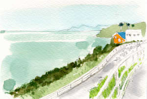 途中左に内海を眺める。高知の海と較べると穏やか、町もなぜか優しい感じがする。