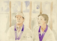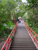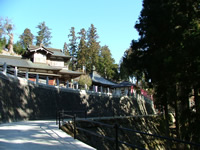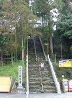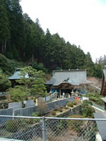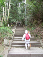 相当登って、着いたと思ったらそこは車の駐車場だった。そこから本堂までまたすごい階段。バスツアーで来た人達の何人かは本堂までの階段を見ただけで帰っていった。ガイドの人が声を張り上げ「こちらですよ」といっても「止め止め」と車に戻っていく。 |