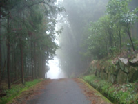 同宿だった6人で88番大窪寺を目指します。朝から雨。最初から雨具で歩きます。どんな素材の雨具でも汗を外に放出するより発汗のほうが多いので内側もビショビショ。あと15キロあるけば結願。どんな気分になれるのだろうな。 |