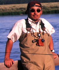 | 子供の頃より釣りが好きでした。 父親は釣りをしない人でしたから、どうして始めたのか記憶にありません。でも小学3年生の夏休みには、毎日ハゼを釣っていたのだけは覚えています。高校生の時にも、東京で暮らしていたときにも釣りだけはしていました。東京で暮らしていた、20代後半にフライフィッシングに出会い、愛知県に引っ越した1988年(35才)に、フライフィッシングの師匠の杉坂隆久氏に出会い、それと同時に男川漁業協同組合の組合員にもなり、数年間は寝ても覚めてもフライフィッシング、鮎釣りにどっぷりの生活でした。春はフライフィッシングでアマゴやヤマメ、イワナ、夏には毎日のように鮎釣りをする日々。(多いときは月に20日もした) 近所の人からは無職の遊び人と認識されていました(まあ近いものがある)。 今、だいぶ社会復帰し、月に一度程度の釣りになっています。 |