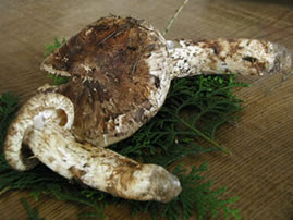 雨が少なく、あまりに暑さの強力な今夏のような時にはどんなだろうと 心配しましたが、早くも松茸を発見してしまいました。 そして、さっそくお吸い物にして味わってしまいました。 本当に地元産の松茸はうまいです。 しかし、くれぐれも無闇に松茸のシーズンに山には入らないでくださいね。 入札で山が取り引きされている所では事件になってしまいます。 今年は何本の松茸に出会えるのでしょうね。 |