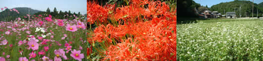 コスモス、彼岸花、そばの花が満開になりました。