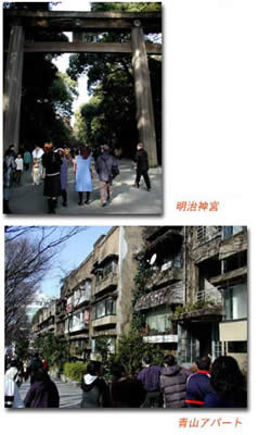 原宿の明治神宮に初詣に行きました。 実は大きな神社の初詣にはめったに出かけません。 多くの人が商売繁盛を願って出かけます。また神社もそれをあおり立てています。神様にお願いすることではないように思えてあまり好きではありません。 それと3月に取り壊しが決まった原宿の青山アパートに行って来ました。妻が子供の頃育ったアパートです。まだ知り合いも住んでいて、40年振りの再会もありました。