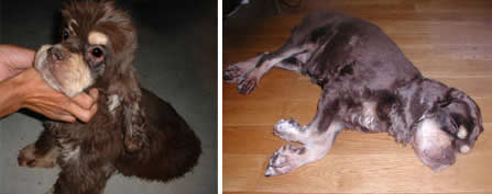 アメリカンコッカースパニエルのチョコレートタン色(珍らしい色)のキティが我が家にやってきました。ブリーダーの所にいて妊娠から引退した子です。さっそく丸刈り にしてしまいました。これから野生児にしてやろうと思います。