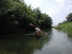 今日も川遊び、今日は家から5分のところでカヌー遊び。小さいと思っていた子供も、もう一人前にカヌーを漕ぐ。小さな中州に小さな基地、ここには腰くらいの深さのところを歩かないといけない。犬達は当然泳ぎ。何も言わないのにキチンと泳いでついてくる。なかなか立派なアウトドア犬になったものだ。