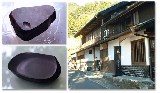 11月に行った、ある展覧会で美しい硯に出会いました。名前をインターネットで検索してみると、鳳来寺の参道に工房とお店があるとでているので、さっそくおじゃましてきました。運良く制作者の名倉鳳山さんもいらっしゃり、いろいろお話まで聞くことが出来ました。