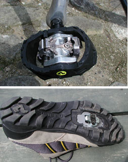 ロードレーサーに乗っている人のほとんどが靴をペダルに固定するビンディングペダルを使用しています。簡単には、はずれる構造なのですが、いざという時、はずれないとこけるしかないので、採用しなかった。でもビンディングペダルの有効性を目の当たりにし、欲しくなった。ロードレーサー用は歩くことをまったく想定してないのでマウンテンバイク用のビンディングと靴にした。乗ってみるとすごく違う。なにせ足を引き上げるときにも力を発揮する。らくらくすいすいサイクリング。でも友人から鋭い指摘があった。「やせるために自転車乗るんでしょ、そんな楽にしたら意味ないじゃん」”ドッキッ”・・・・・・・・・・ウーンもっともだ。 |