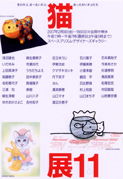 2月8日 2月9日より名古屋のスペースプリズムで猫展。 猫に関係する物の即売会。 http://www006.upp.so-net.ne.jp/space_prism/ この画廊で3月27日から個展 同時にこちらの会場でも個展 こちらは水墨画。 そろそろDMも作らなくっちゃ(汗) |