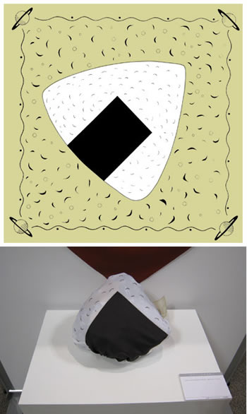 私はおにぎり模様のふろしきを作りました。そしてそのふろしきで大きなおにぎりを包みました。こいつをもってお花見です。