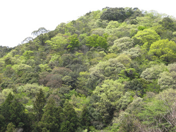 山の木々が続々と芽吹いている。いろんな緑がいっぱい。
