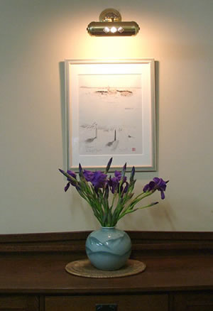 個展に出した絵を家に何枚も展示し、花を 生けたりして小さな遊びをしています。