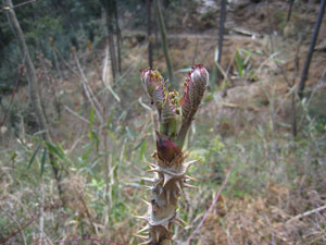 しかしタラの芽発見。いくつが採ってきました。