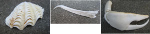 「シャコの武器」「ハナマルユキダカラガイ」「マダライモガイ」「カニの甲羅」