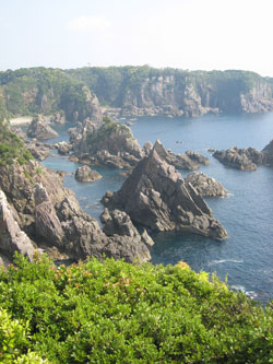 大島の海金剛。 荒々しい岩が迫力でした。