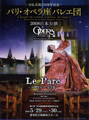 5月29日 名古屋にパリ・オペラ座バレエ団が来るというので即予約。 バレエといえば、「白鳥の湖」か「くるみ割り人形」しかしらない。オペラ座のバレエ団がどんなバレエをするのか興味津々。(TVでのバレエ鑑賞はよくします)