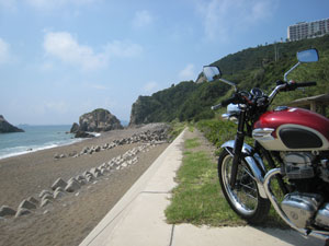 9月6日 とうとう大型バイクが来ました。 あこがれの「W650」kawasaki 朝、納車されると、さっそく試運転に渥美半島の先端、伊良湖岬まで走ってきました。 とっても乗りやすいバイク。