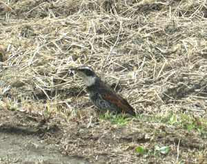 田んぼのあぜをツグミがちょんちょんとエサを探していた。