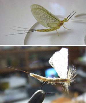 上の写真はモンカゲロウという水生昆虫(カゲロウ)です。