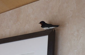 4月7日 「泥はよせ部屋の中にて初つばめ」 今日ツバメが来ました。 一昨年の巣が気に入ったようでそこに入りそうです。