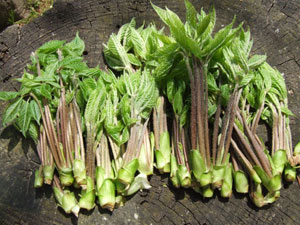4月19日 この時期になると、山の直売所で山菜が売り出されます。 コシアブラ、タラノメ、ワサビ、がでていました。 今日の夕食は山菜色々の天ぷらとメバルの刺身、塩焼き、煮付け。 |