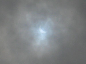 名古屋は曇り空であきらめていたのですが、11時、曇りの空の中にうっすらと三日月状態になった太陽が見えました。