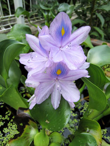 メダカ鉢のホテイアオイが毎日花を付けています。