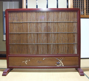 夏になると葦の衝立やヨシズを出します。