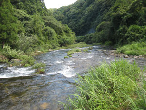 水深の浅いところが多い男川ですがここは水深2mの淵。