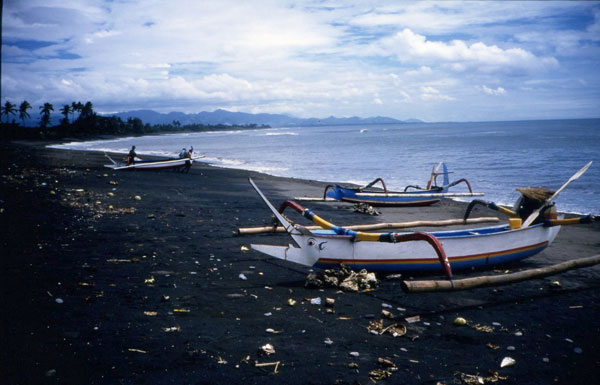 レンタルバイクを借り、サバの海岸までサテ(串焼き)を食べに行った。(ウブドから1時間)海岸にあげられていた、どの船にも面白い装飾。