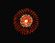 が銀色に光り、尾を引いて紅色の花か開く。