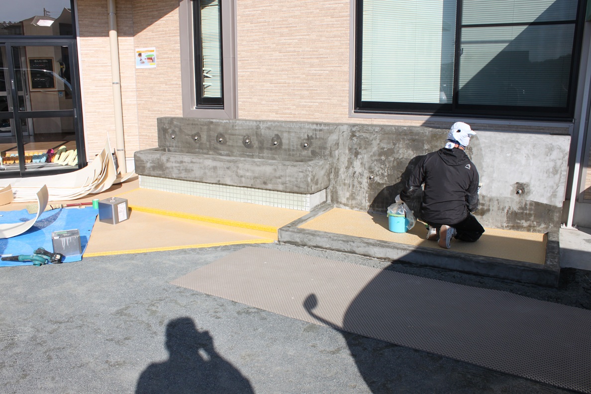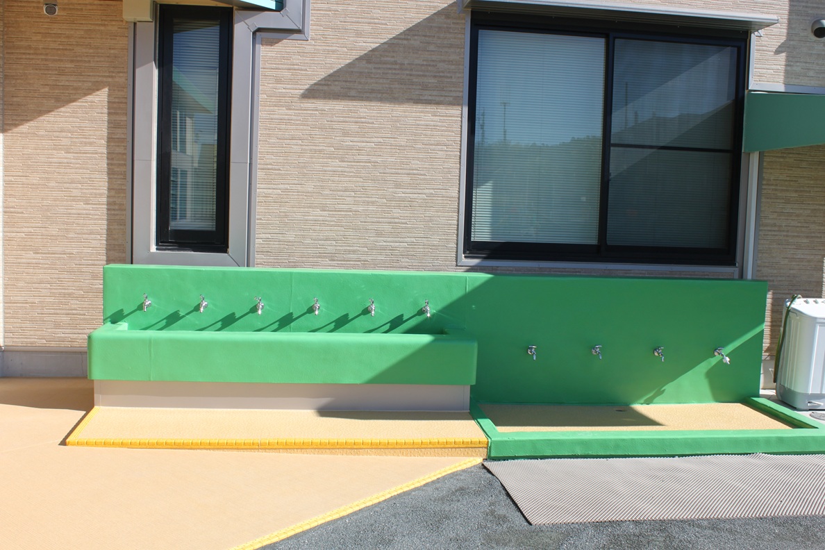 園児用手洗い場については、クッションコーティングシステムを導入し、転倒や衝突時の衝撃を緩和するようにしています。