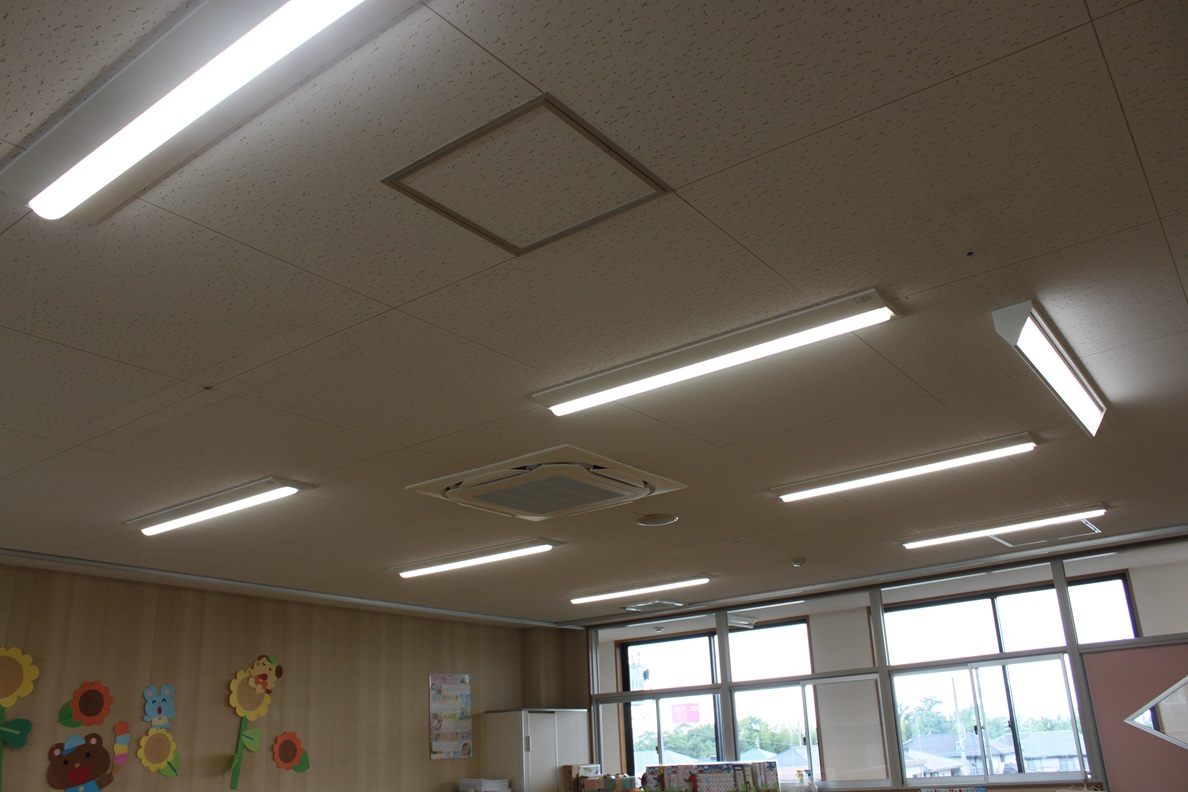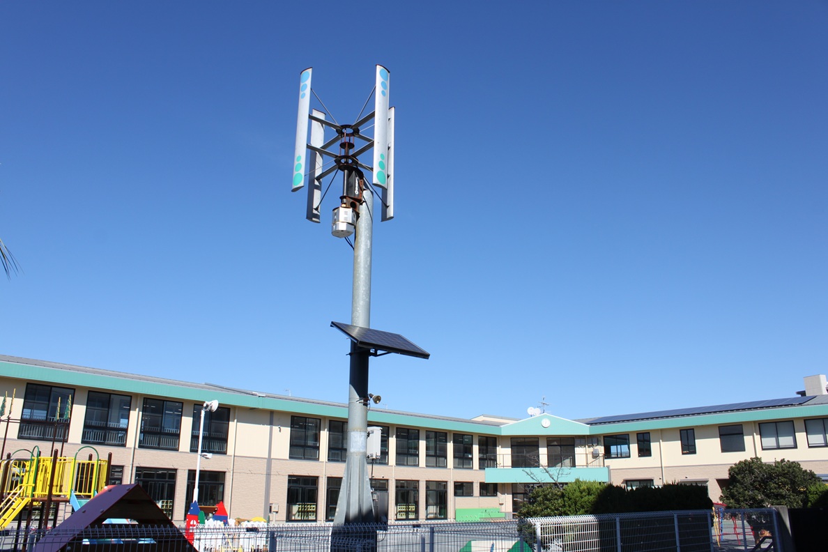 子どもたちの未来のため、持続可能な社会の達成をめざし、再生可能エネルギー(太陽光発電+蓄電池、風力発電)の導入や、省エネルギー製品(省エネ型エアコンやLED照明等への切替)の導入に取り組んでいます。