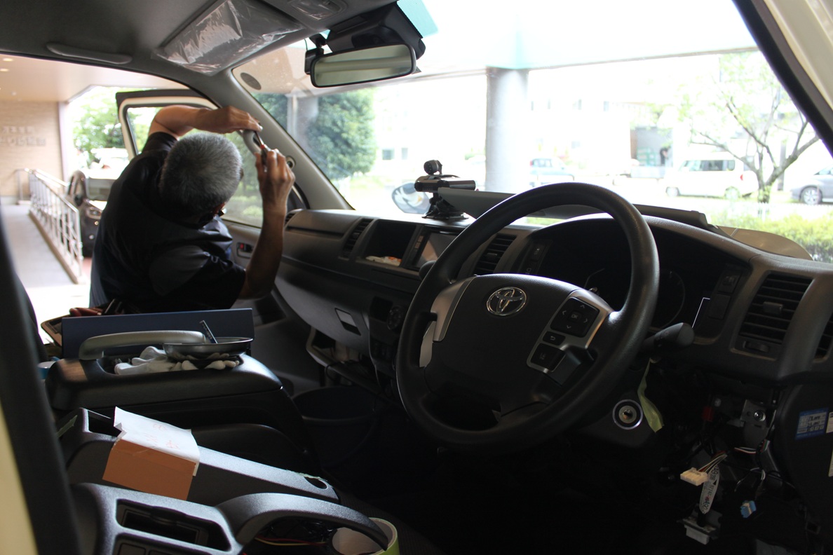 マイクロバス・ハイエースともに、運転手の酒気帯びの有無をアルコールチェッカーで確認しています。
