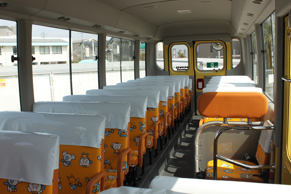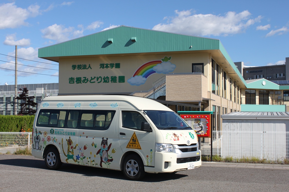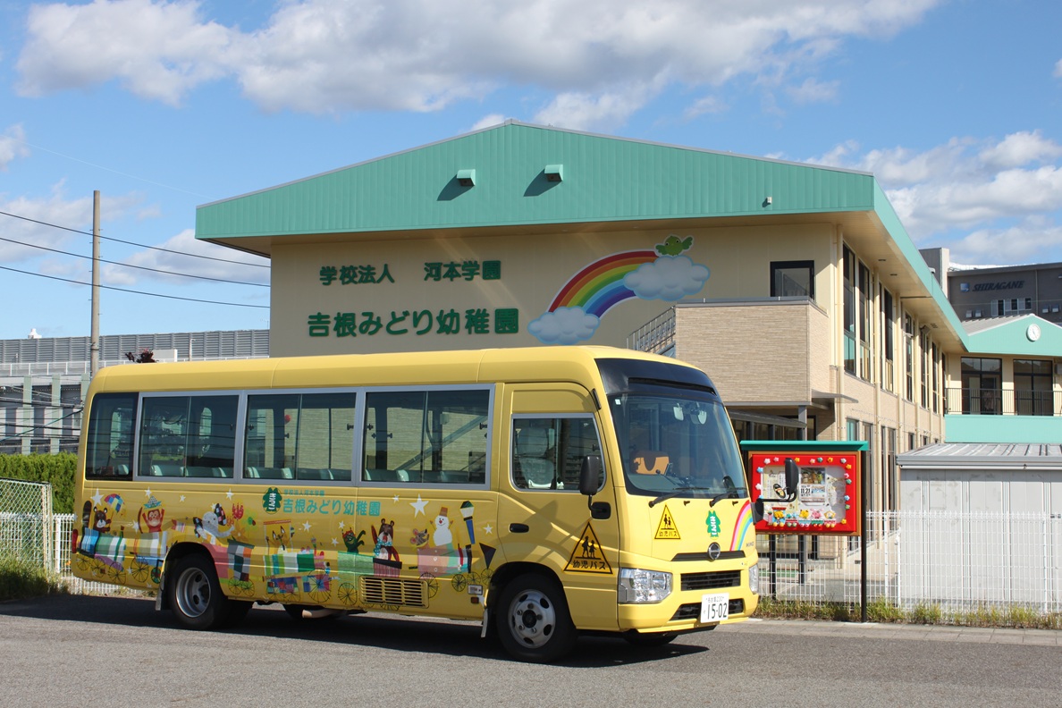 写真上のスクールバス(マイクロバス 園児49名乗り)は、主に守山区の吉根・志段味西・下志段味小学校区内で運航しています。
