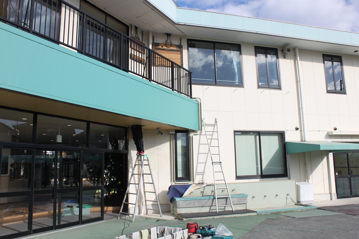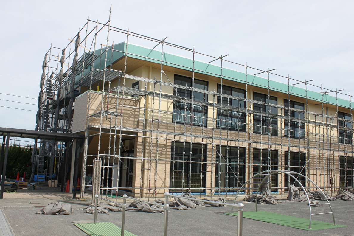 また、園舎2階の正面玄関側と園舎北側の軒天部分の落下防止工事(耐震補強)と外壁のサイディング工事とペンキ塗り替え工事は引き続き令和5年12月頃まで工事を予定しております。
