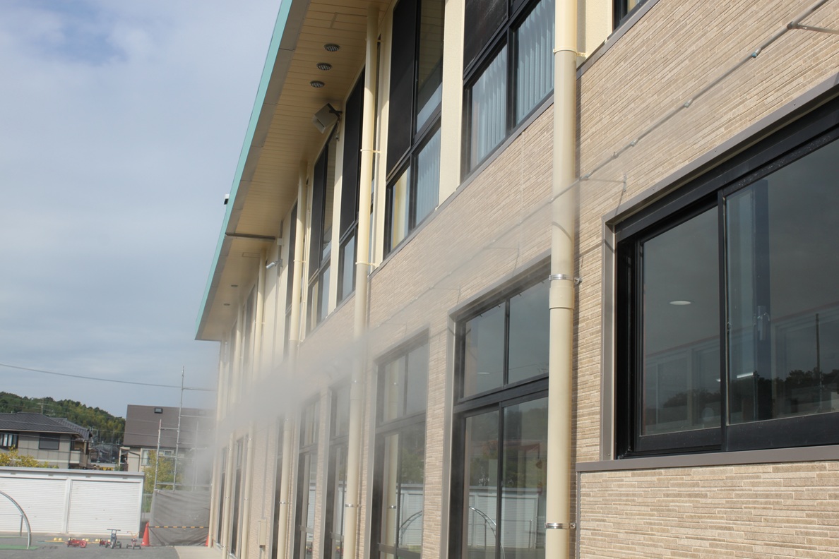 令和5年7月21日(金)より園庭遊具を新規1台(アンパンマンベンチ)とスライドルーフテントの導入、園舎2階の軒天部分の落下防止工事(耐震補強)と外壁のサイディング工事とペンキ塗り替え工事(園庭側)、涼霧ミストシステムの更新工事を行いました。
