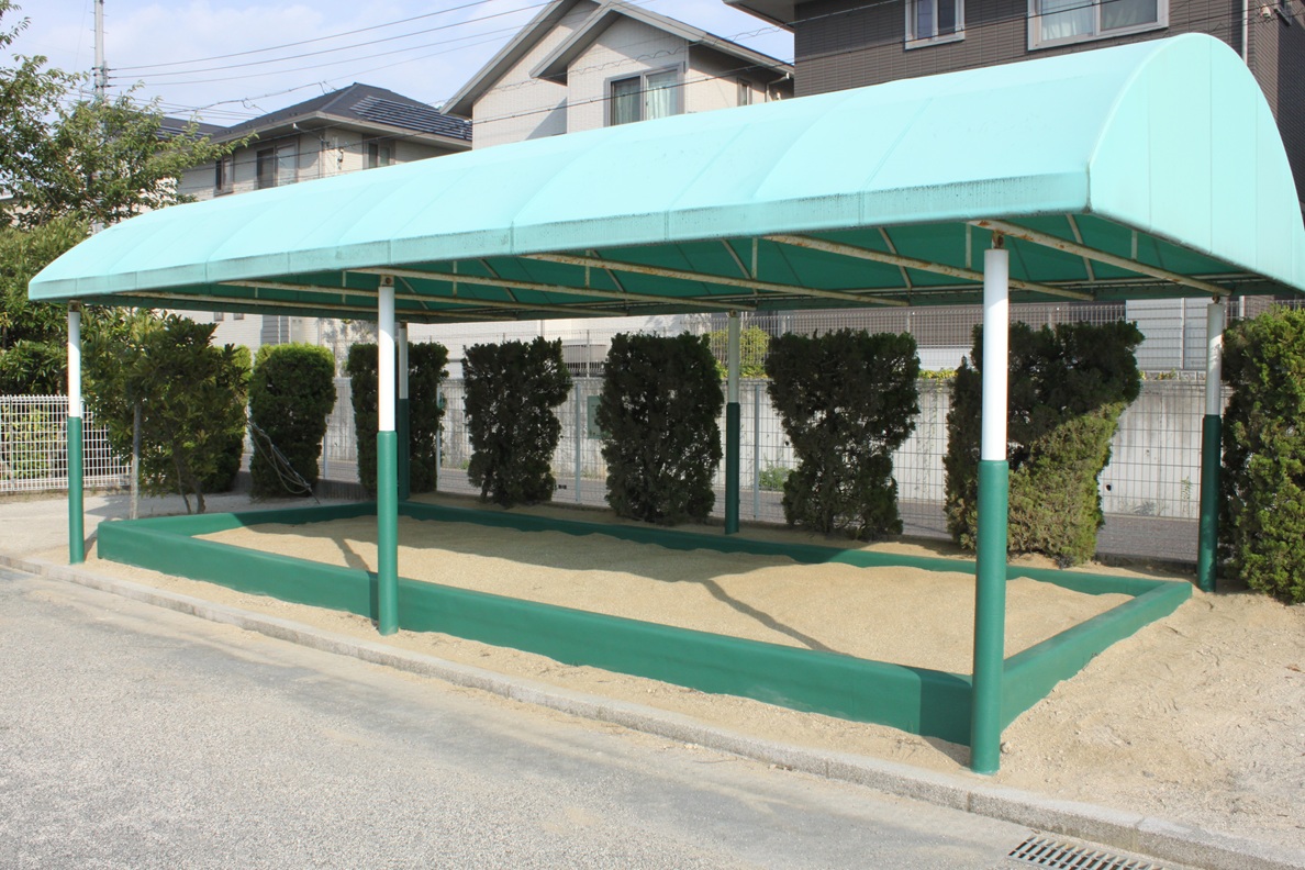 ※園庭砂場・砂場柱・園庭照明柱もクッションコーティングシステムを施工してあります。