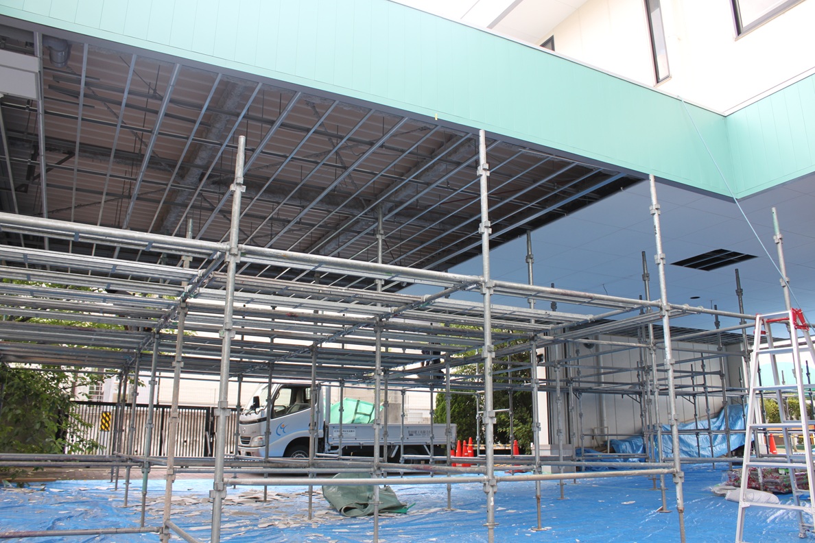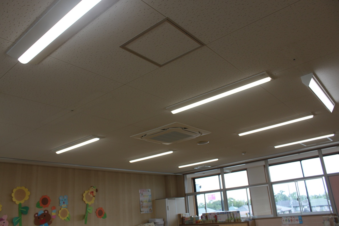 令和4年7月21日(木)~8月16日(火)の間、園庭遊具を新規2台導入、園舎2階廊下・遊戯室の床張替工事、園舎2階園児用トイレ改修工事、園舎正面玄関エントランスの天井材・天井照明器具の更新・落下防止工事、正面玄関外壁改修工事(正面玄関外壁改修工事のみ8月31日(水)終了予定)、各保育室・職員室の天井照明器具を高効率型(LED)照明器具への更新工事、遊戯室・職員室空調設備(エアコン)更新工事、防犯カメラ増設工事等を行いました。