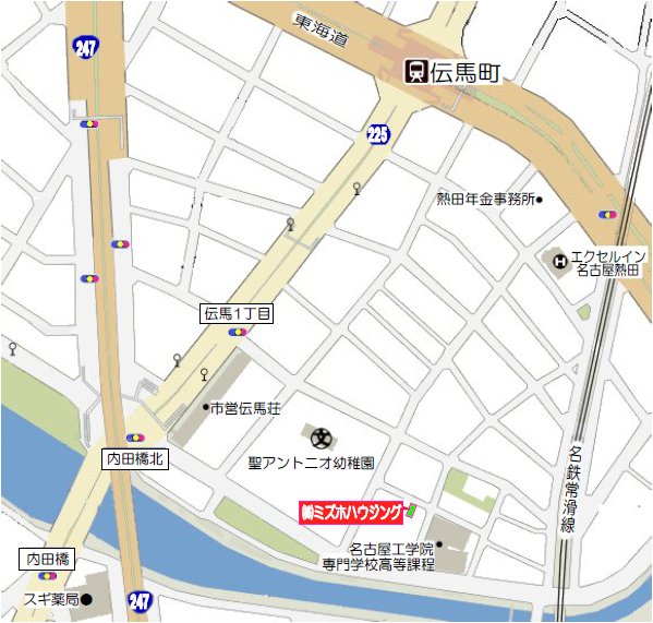 | アクセス | (最寄駅) ○名古屋市名城線・伝馬町駅徒歩5分 (バス) ○内田橋北停留所・徒歩3分 (その他) 聖アントニオ幼稚園 東 |