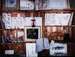 当館のロビーには博物コーナーがあります。 動物の「てん」も目を光らせていますが、 明治時代の什器や文書も展示しております。 ご来館頂いた小説「人間の証明」の作家 森村誠一様の色紙もございます。 ・・・・この色紙はお弁当の包装紙に、西条八十 「少年詩集」(昭和初期発刊)から抜粋し、 書かれたものです。 |