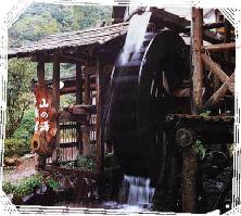 | 庭先の大きな水車が お客様をお迎え致します。 |