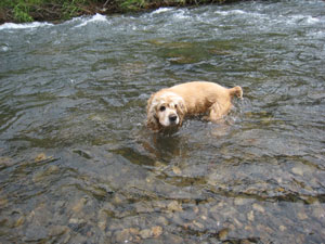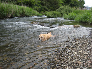 7月26日 2002年5月28日生まれのプリンは今8歳です。人間でいえばおばあちゃんの年で顔の毛がだいぶ白くなりました。でも毎日の散歩で水浴びをしています。 |