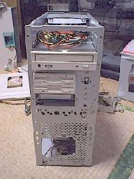 ファン取りつけ部付近のパンチングを切断して空気抵抗を減らし、効率改善と騒音対策とします。固定ツメ、その他必要部位を残して切断した為、見た目は非常に不細工です。ケース加工は非常に怪我をしやすいので注意しましょう。また、切断部はヤスリで仕上げて怪我をしないようにしておきましょう。